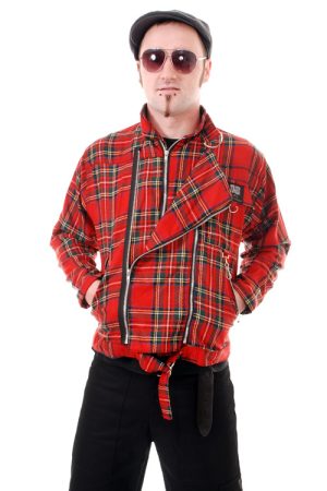 Tiger Black Cotton Zipped Jacket with Red Tartan Sleeves.