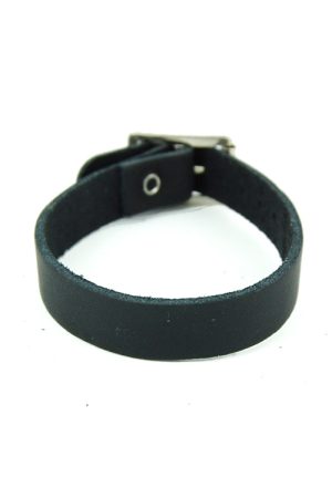 Small Plain Black Leather Wristband