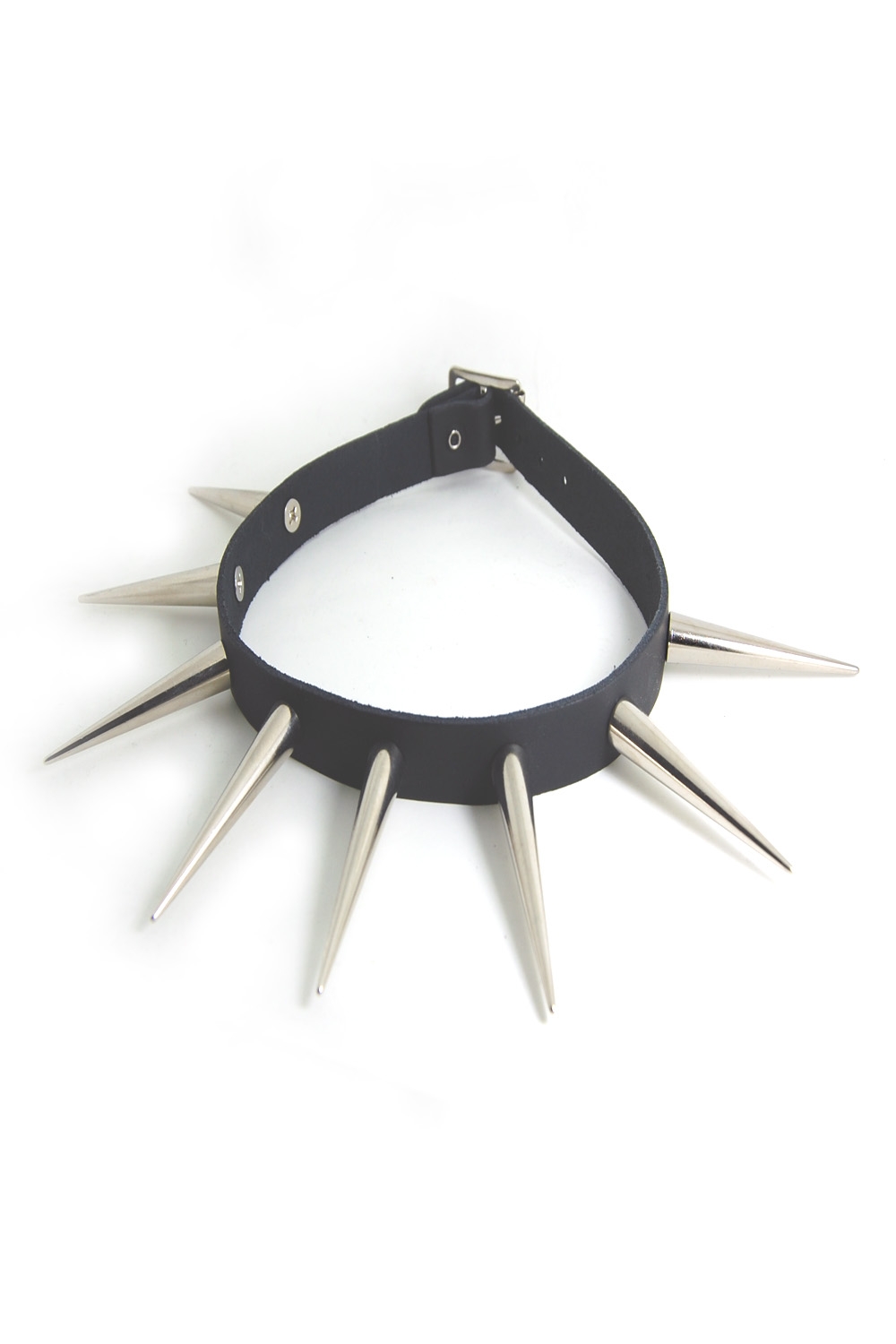 Leather 1 Row Large Smooth Spike Stud Choker.