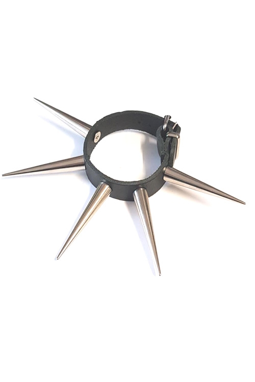 1 Row Large Smooth Spike Wristband. Black Leather wirstband with 1 row of solid Metal Studs.
