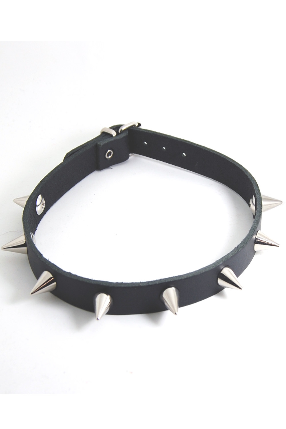 Plain Black Leather Choker, with .Nickle Plated Smooth Spike Studs. Made from quality Leather. Approx 15mm wide. Punk Goth Rock Metal what ever your style.