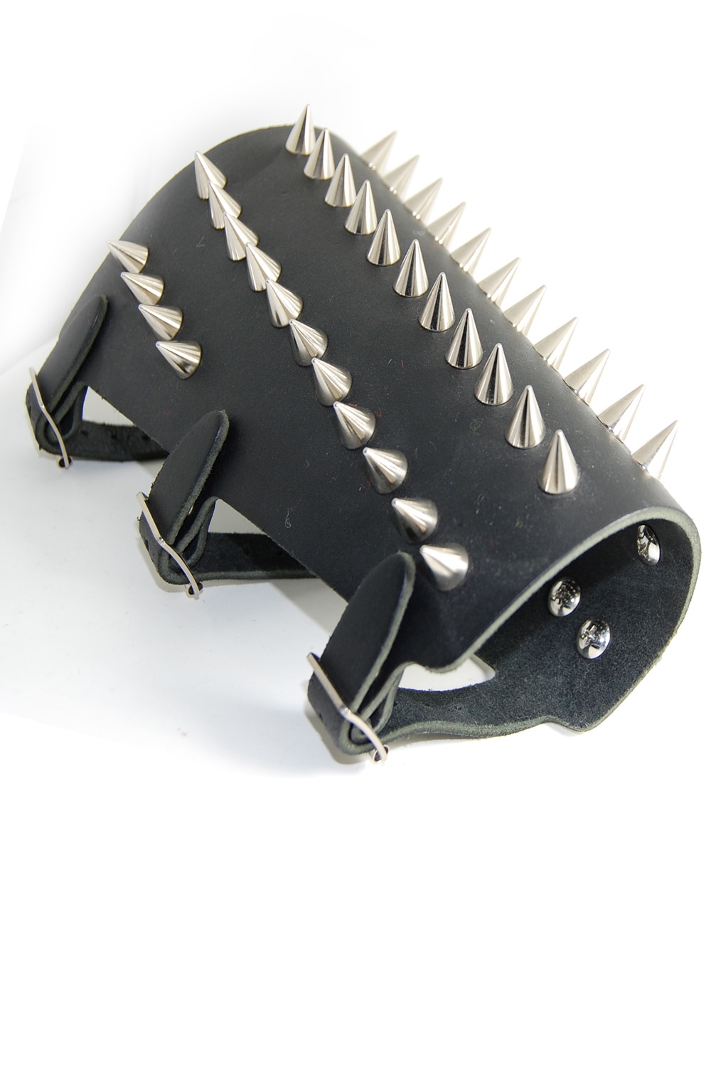 11 Row Small Smooth Spike Stud Black Leather Wristband.