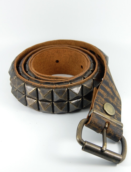 2 Row Pryramid Distressed Brown Leather Belt. Made out of quality Leather.