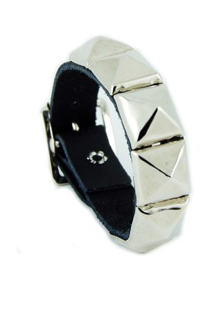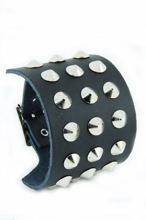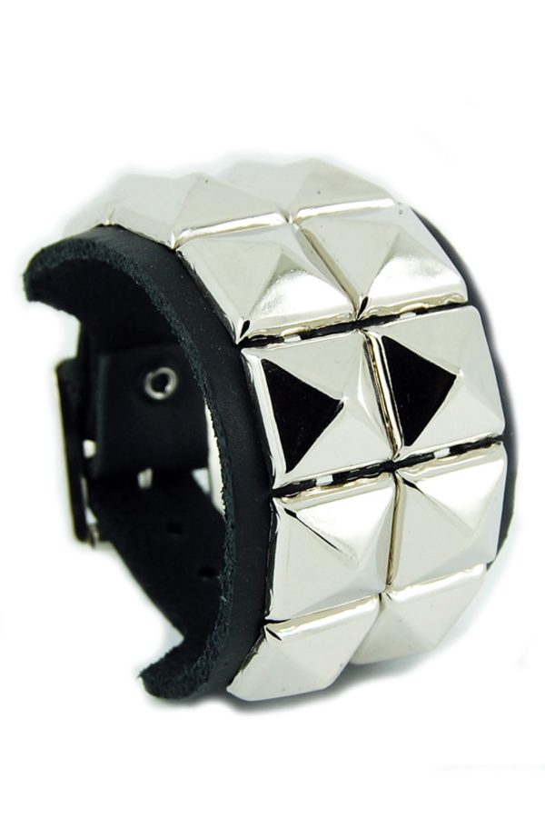 Leather Wristband with 2 rows of Pyramid Studs. Classic Punk, Rock, Goth accessory. Made from 100% Leather.