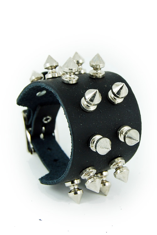 Leather Wristband with 2 rows of Spike Studs. Classic Punk, Rock, Goth accessory. Made from 100% Leather.