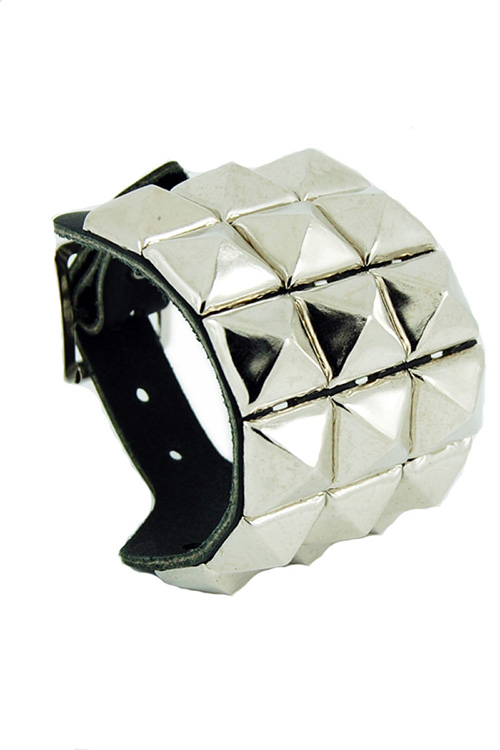 Leather Wristband with 3 rows of Nickle Plated Pyramid Studs. Classic Punk, Rock, Goth accessory. Made from 100% Leather.