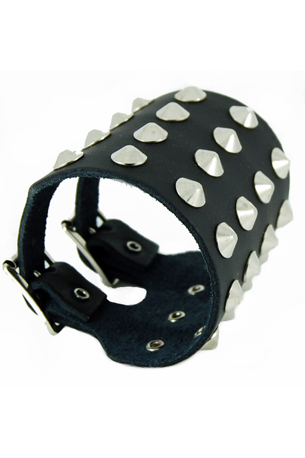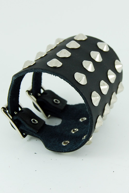 4 Row Conical Stud Black Leather Wristband.. Classic Punk, Rock, Goth accessory.