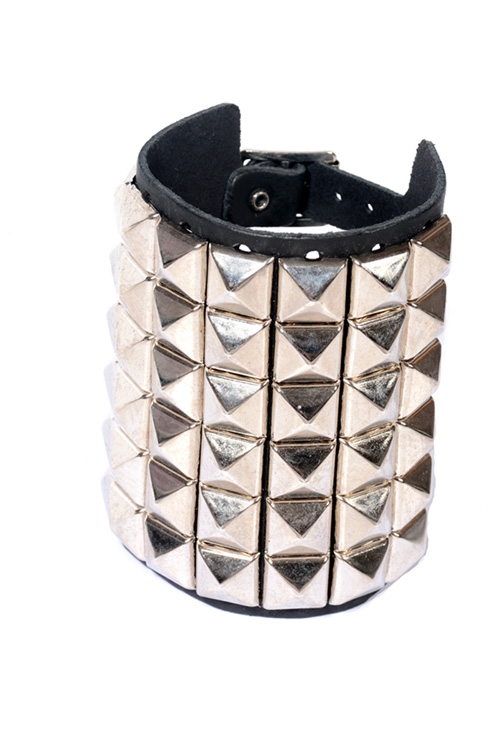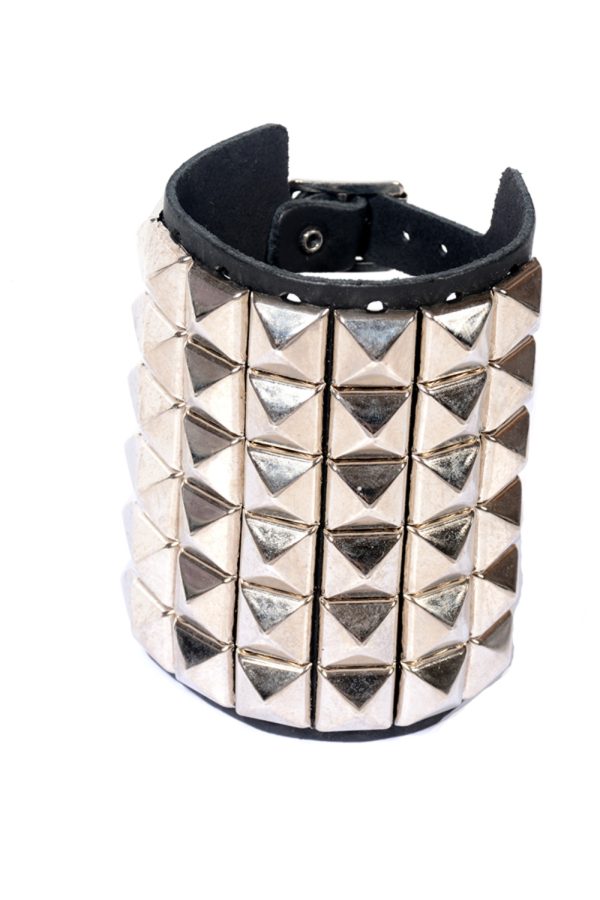 Leather Wristband with 6 rows of Nickle Plated Pyramid Studs. Classic Punk, Rock, Goth accessory. Made from 100% Leather.