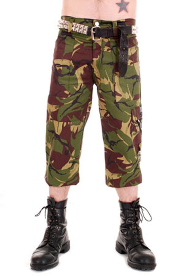 Bondage Camo Cotton 3/4 Length Pants. Same as the original Classic Zip Bondage Pant but shorter with a wider leg.
