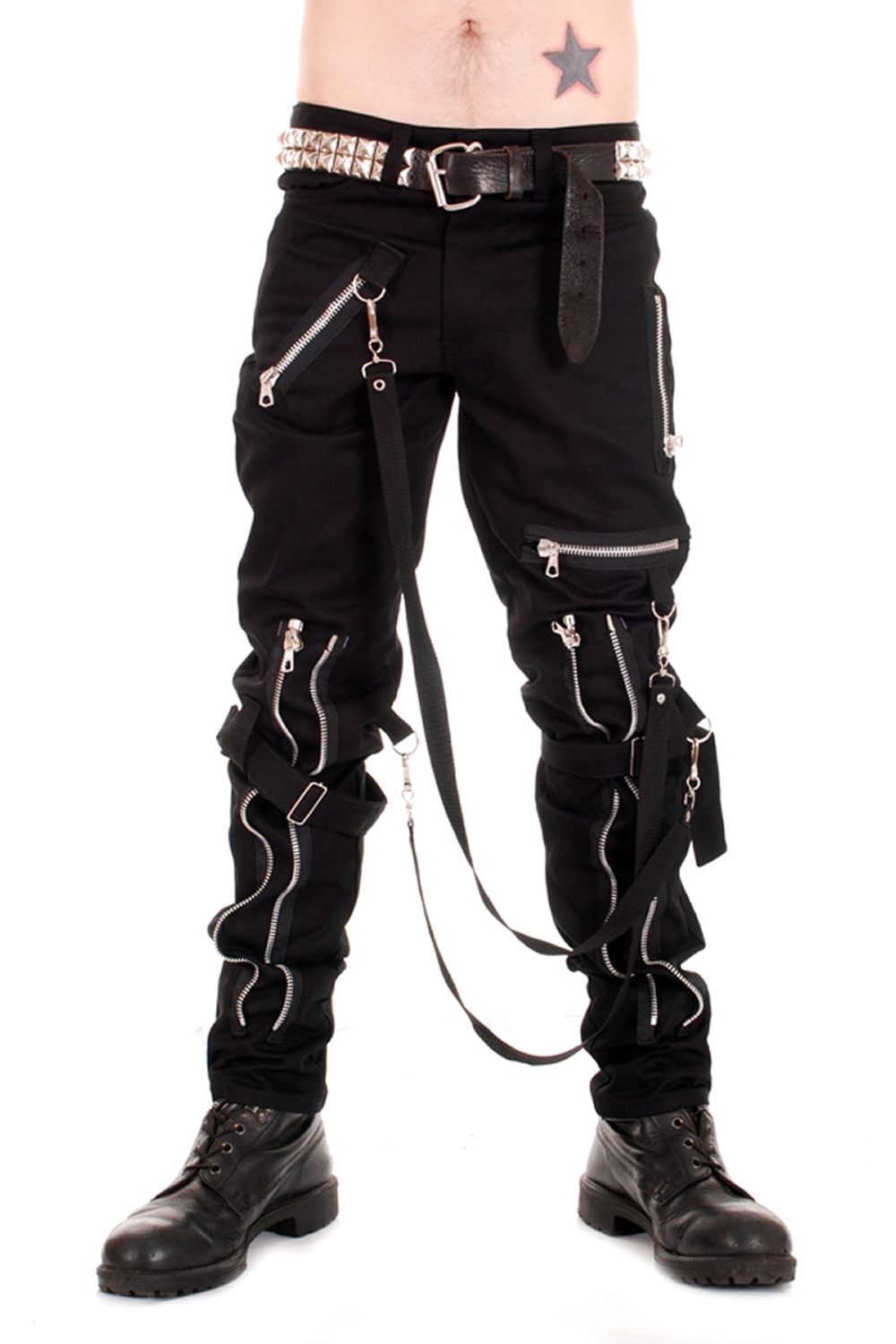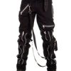 Tiger of London Black 100% Cotton Bondage Pants with Heavy Duty Zips and Two Bondage Straps.