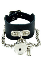 Black Leather Wristband with Small Padlock and Chains. Complete with 2 keys.