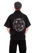 Black Cotton Heavy Duty Work Shirt with print Grey and Silver Pentagram on back.