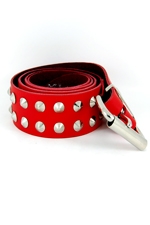 2 Row of Nickel plated Conical Studs on a quality Red Leather Belt complete with removable Buckle . Perfect for fitting through jean belt hoops.