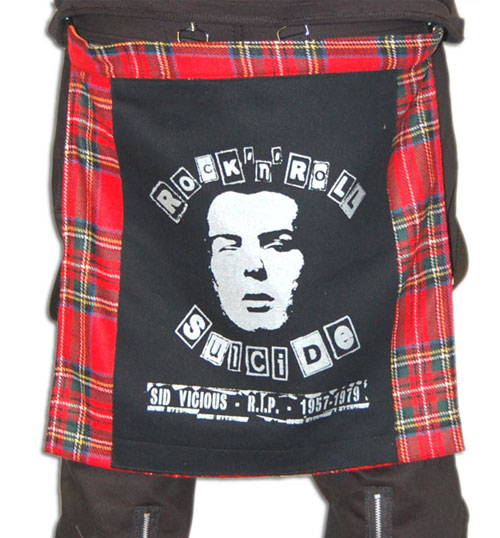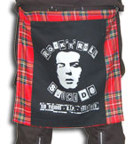Tartan Bumflap with Sid RIP Print on a Black Cotton Panel.