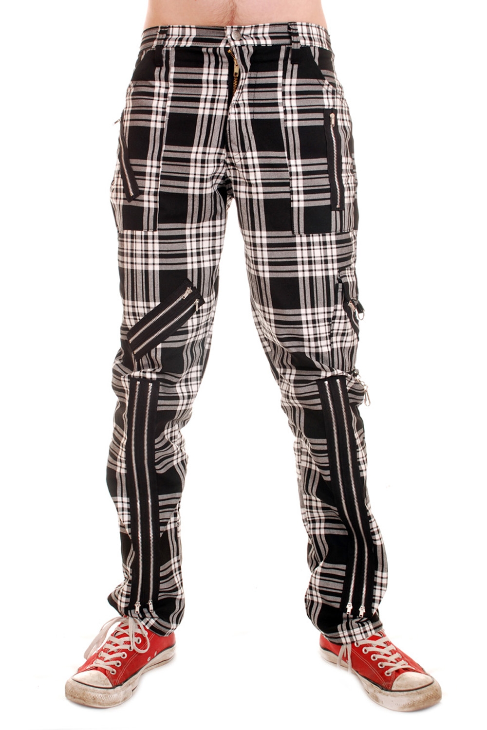 Black and White Zip Bondage Cotton Tartan Pants as worn by Punks for years.